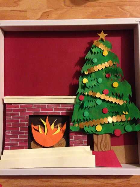 Para obtener el árbol la cantidad adelante que quería, que tenía que ser más adelante que la chimenea y el manto, así que al menos siete capas de cinta de montaje hacia adelante. Creo que fui con ocho para estar seguro de nuevo. Hice tres cinta de montaje piezas de ocho capas y colocados a lo largo del árbol. luego poner el árbol en el fondo y se unió al resto de la imagen.