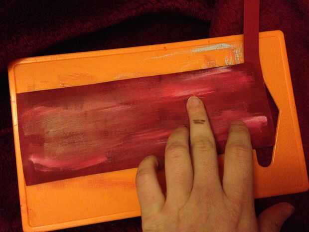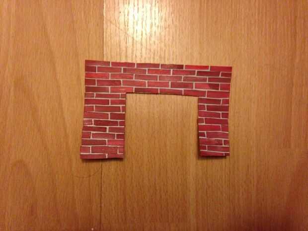 Entonces decidí añadir los ladrillos sobre la chimenea. Este proceso resultó para ser muy desperdiciador de tiempo pero sentí que valió la pena ya que quería tener los ladrillos de diferentes tonalidades y diseños, viendo como ladrillos reales tienden a ser como eso. Tomé un pedazo rojo de papel y marrón, rojo y blanco cachetada de la pintura en él y mezclan un poco por barrer mi cepillo de derecha a izquierda en el papel de unos pocos trazos. Después de que la pintura seque I cortar el papel de brick en tiras y cortar las tiras en rectángulos. Entonces cuidadosamente pegado mi ladrillo en la chimenea gris base, alternando las filas para darle el aspecto de ladrillos que se pusieron.