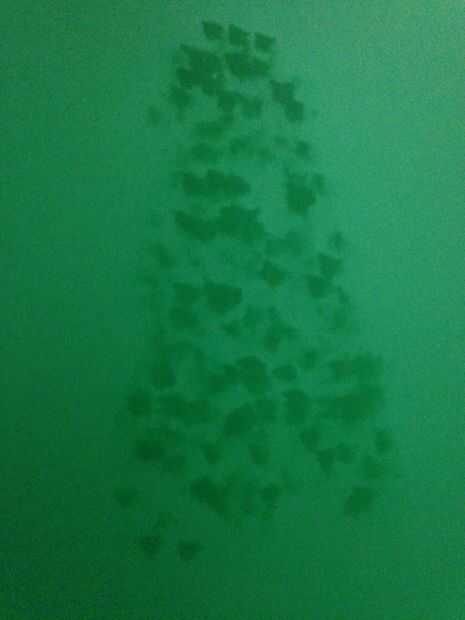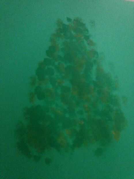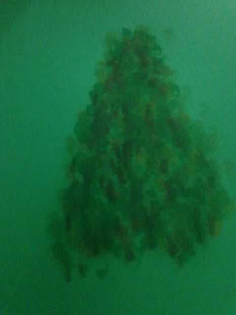 Tomé una hoja verde y salpicados en algunos pintura verde con un cepillo. entonces salpicados algunos amarillo, luego algunos más verde, a continuación, algunos marrones, un poco más amarillo, y, adivinaron, más verde. Puse todas estas capas de color en directamente después de uno al otro para que no fueran seco y fueron capaces de mezclar muy bien.