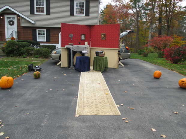 Configurar la mayoría de las calabazas que se acabó y sólo tenía que esperar a la tumbona llegar. Oh, también forradas las tapas y los lados de las paredes con luces y obviamente desplegó una alfombra para saludar el truco de o tratamiento.