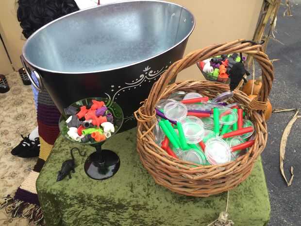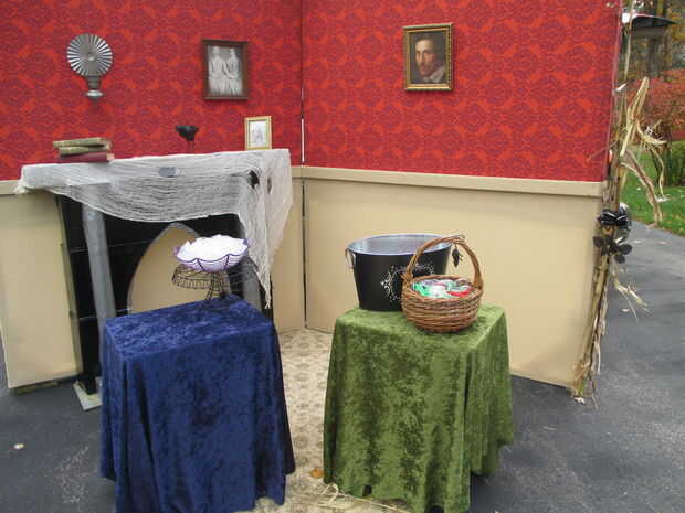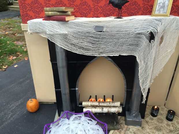 Tela de araña, un sostenedor de vela Cuervo, algunos viejos libros y velas chimenea para completar el look. Establecer dos mesas como nos estábamos dando una variedad bastante grande de golosinas (detective juguetes, brillan los dientes, dulces, palomitas de maíz y galletas de witchy dedo.)