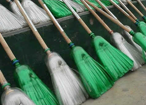1. Retire la etiqueta de la botella. 2. Quite la parte inferior de la botella con la navaja. 3. Mida la distancia entre cada corte. (1 cm) 4. hacer cortes en la botella. 5. Retire el cuello con la navaja. 6. Corte la parte superior de otra botella. 7. montaje de piezas sin cuello, uno por uno sobre la parte con el cuello. 8. colocar la tapa sobre la base de la escoba. 9. taladrar dos orificios e inserte el cable a través de todas las capas de botellas. 10. Tire del cable hacia el otro lado. 11. Gire los extremos para sujetar. 12. fijar las piezas con un clavo. 13. la escoba está lista---canción: http://bit.ly/1TUjUZZ------mejor: 5 ideas locas con el plástico de la botella https://youtu.be/XkM94PtG7TU enlace---