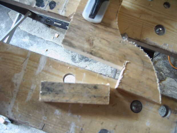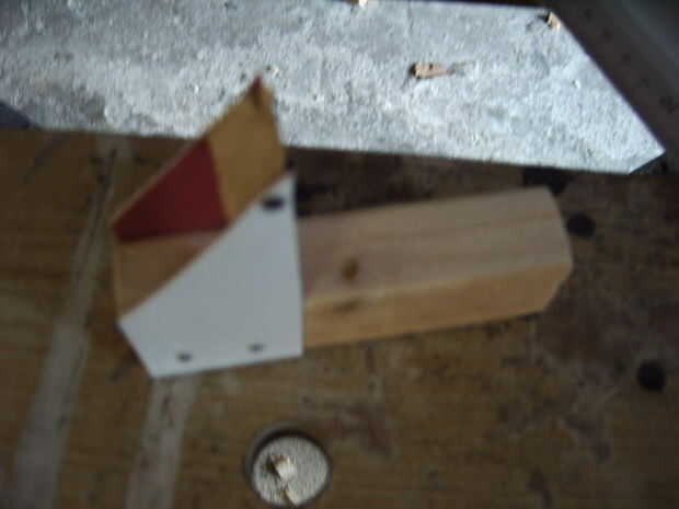 Nota: como usted puede notar en las fotos, clavó un trozo de madera entre las dos aletas. Pensé que esto era una buena idea en el momento. Que las dos aletas estaría más había asegurado de esta manera, pero fue un error. El cortarla mantuvo jamming en la madera y los clavos que utiliza. Pero luego me lo quitaron y hubo interferencia no más y era mucho más fácil de hacer (clavado ese pequeño pedazo de madera entre las dos aletas era duro). Así que ignorar ese pequeño pedazo de madera. Es algo que aprendí al hacer esto.