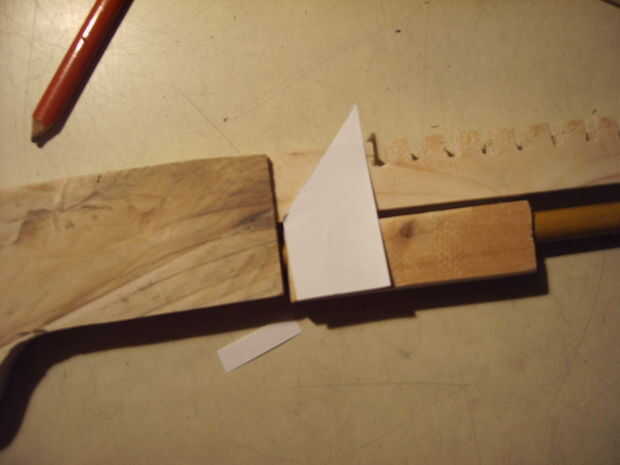 Entonces clavo un pedazo en la parte posterior de cada lado de la culata con dos clavos para cada pieza.