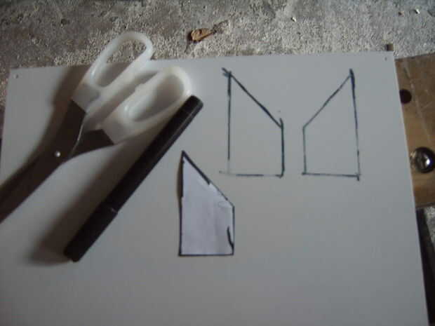 Cuando lo haya hecho usted querrá cortar dos piezas de su plástico duro (véase el cuadro para las dimensiones y forma). Como dije antes he utilizado una placa comercial de cerveza que fue hecha de plástico duro. Usted puede usar lo que quieras. Sólo tiene que doblar un poco pero siempre volver a su posición original. (esto es porque cuando 18 cortarla todos se carga las aletas se ser presionadas hacia adentro. Pero cuando la cantidad de cortarla se vuelve menos necesitan para volver a la posición normal)