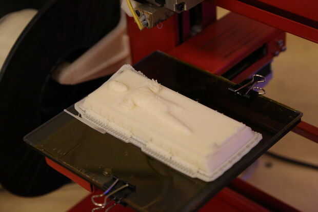 Una vez que esté todo conjunto inaugurar el trabajo de impresión 3D puede golpe la mano hacia abajo en ese gran botón rojo y comenzar el proceso de impresión 3D. Mi modelo fue ~ 6 "x ~ 1,5" y tomó alrededor 1.5hours para imprimir completamente.