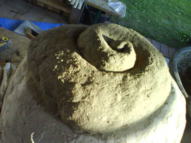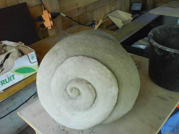 Al día siguiente, empecé a añadir la estructura básica de shell en la cima de la bola. En la primera foto puedes ver estructura oscura (aún húmedo) sobre la bola más brillante (ya secada desde el día anterior).
