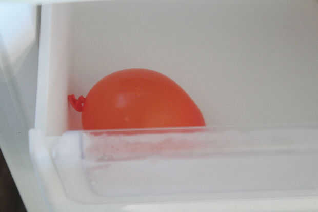 ¿Cuánto debe usted guardarlo allí? Yo diría que la noche sería suficiente si desea congelar completamente. Congela de afuera hacia adentro, así que si quieres una esfera hueca puede congelarlo para 4 o 5 horas perforar un agujero en el hielo exterior y drenar el agua dentro.