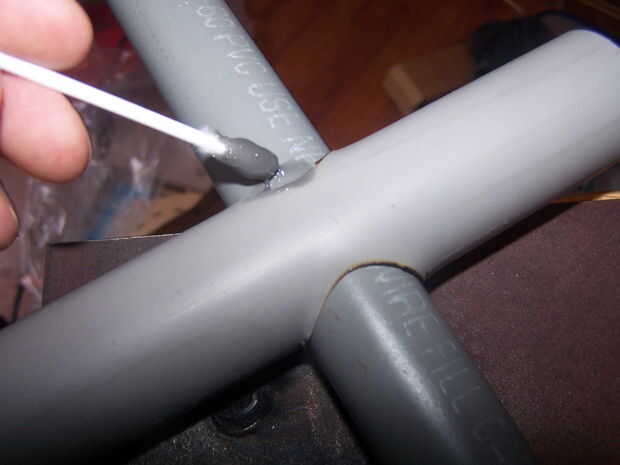 En pocos minutos, su apariencia debe ser fresco. Tomar el trozo de chatarra y deslice sobre su base. Poner la tapa sobre la base y mueva la empuñadura a donde usted lo desee (para un agarre con una sola mano, mano-y-uno-mitad, ect.). Ahora tome el tapón de cemento nuevo sobre la base según las instrucciones del fabricante. Para consolidar el arco yo solo dab el cemento en las juntas con q-tips, porque las constructoras que viene con el cemento es demasiado grande y hacen un lío. Una vez que hayas conseguido el cemento aplicado, establece su base a un lado por alrededor de una hora.
