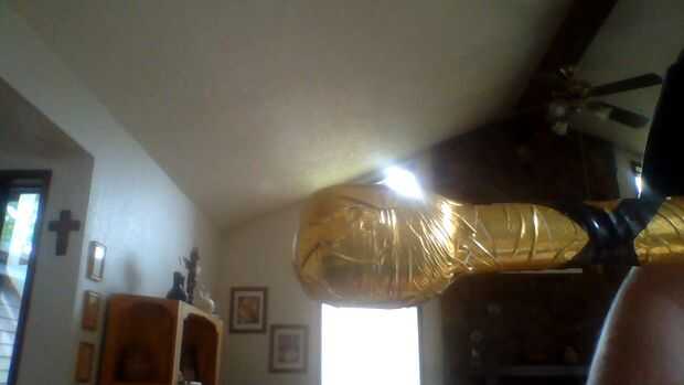 Tome un pedazo de la pipa de espuma de tubo 1/2 y cinta adhesiva en la parte inferior de la espada como la punta. Esto hará que el peso de la espada, está más equilibrada y y no puede romper una ventana por que cae.