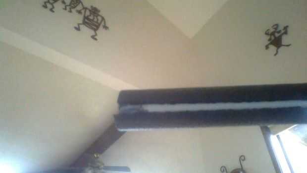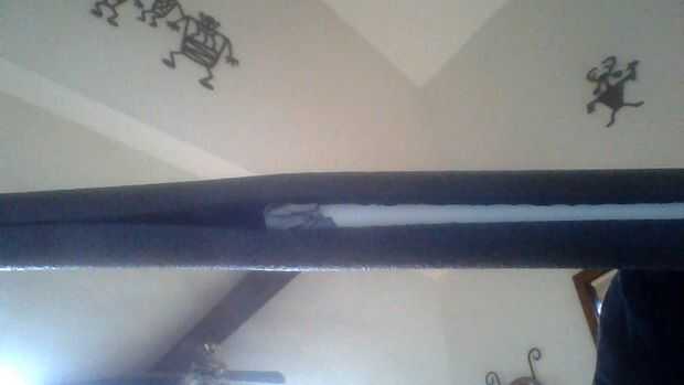 Ahora, usted quiere tomar su pipa espuma y lugar a donde se marca en el lado de la lámina. Luego, córtelo hasta donde tienes la espuma casi con la punta. Pasa nada si la espuma se divide, porque se supone que para hacer eso!
