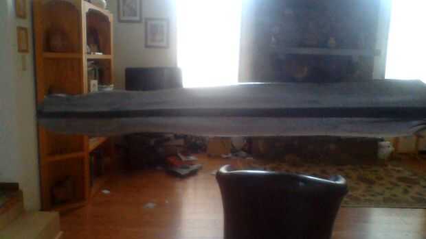 Ahora, aplique la cinta en tiras verticales en lugar de estilo sacacorchos. Esto disminuirá el peso de la espada y le ahorrará en cinta! Poner en negro cinta eléctrica para más detalles, pero no dude de poner cualquier cinta que desee en la hoja!
