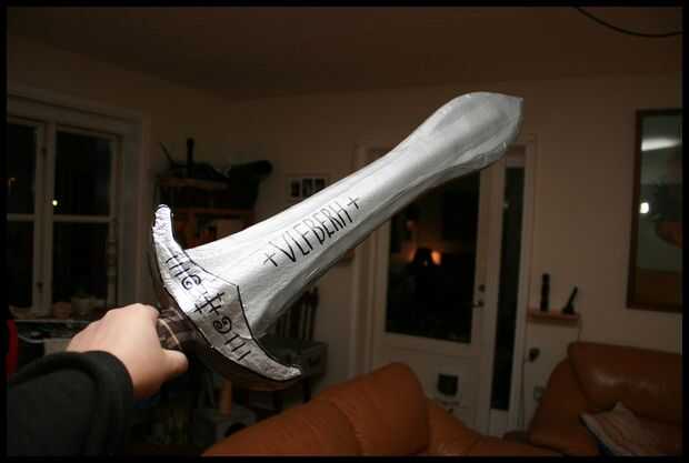 esta hacha de batalla es perfecta para una batalla de patio trasero o un juego de LARP (juego de roles de acción en vivo) en los bosques cercanos.Es fácil de hacer, y con supervisión de un adulto los niños pueden hacer su propio.Este es el primer ins