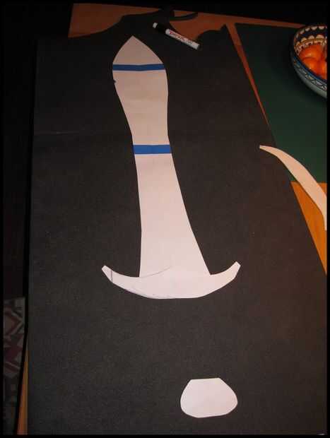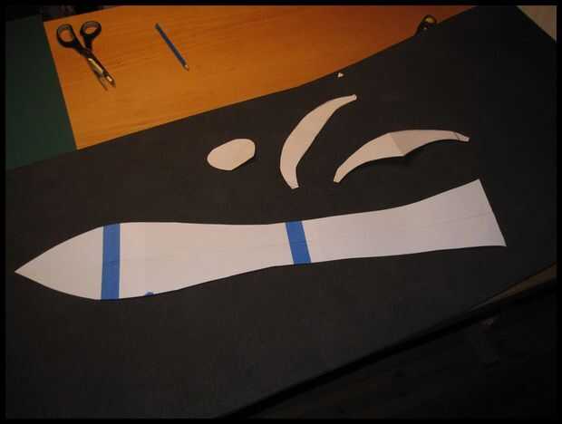 Ahora dibuja el diseño de su elección sobre papel o cartón. Se trata de la plantilla así que tenga cuidado y tome su tiempo para hacerlo perfecto. Si tienes problemas con la fabricación de los dos lados de las espadas idénticas, dobla el papel por la mitad y corte doblado. Cuando se despliegan el papel de la plantilla será perfecto y los dos lados idénticos.