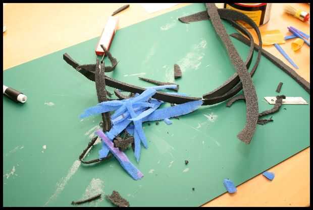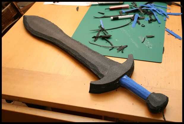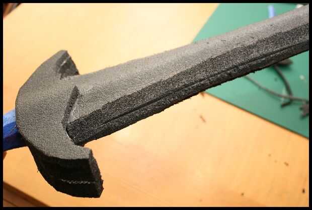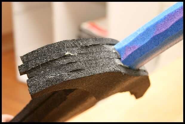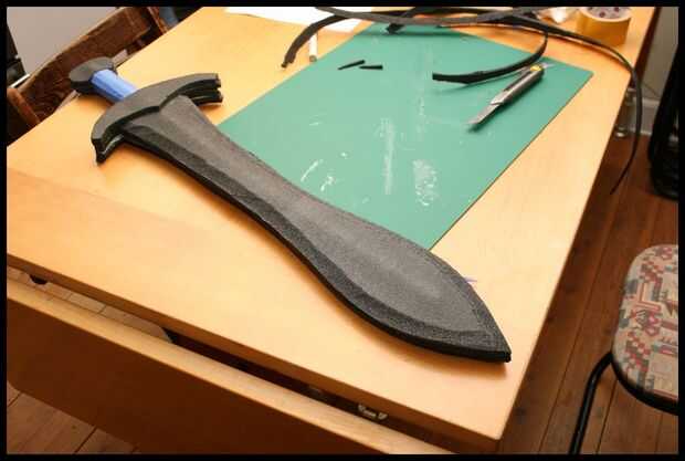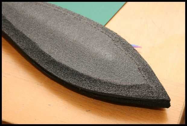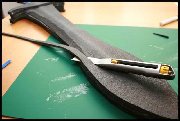Para que la espuma parece una espada real necesita cortar el borde. Si las capas tienen no alineadas al pegar, este es el momento adecuado para cortar esa ventaja también.