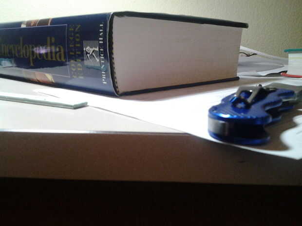 4: poner el palillo bajo un libro pesado y espere hasta que el pegamento se seca (después apretándola y limpiar el exceso de pegamento)