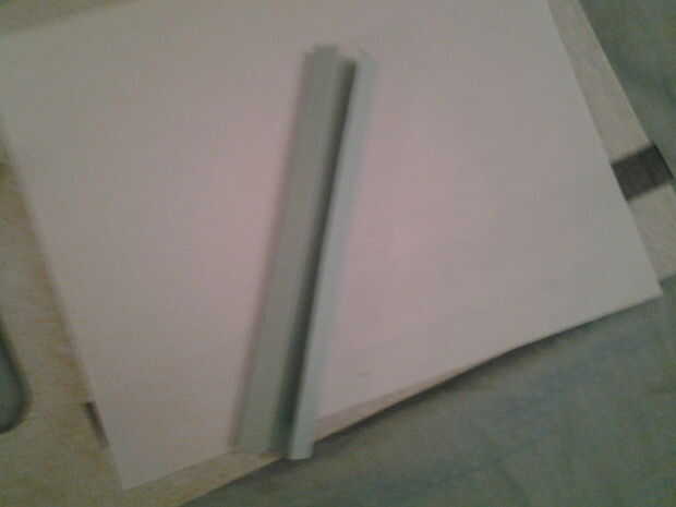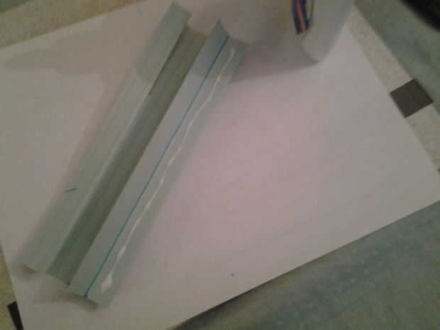 3: poner pegamento en cada doblez y lo (un doblez a la vez) doblarle para crear un palo de papel duro (debe ser aproximadamente la mitad una pulgada de ancho)