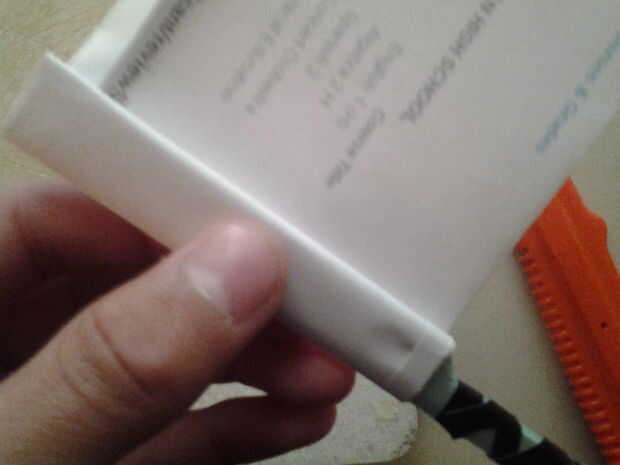 1: poner la espada en el borde del papel de la impresora como se muestra.