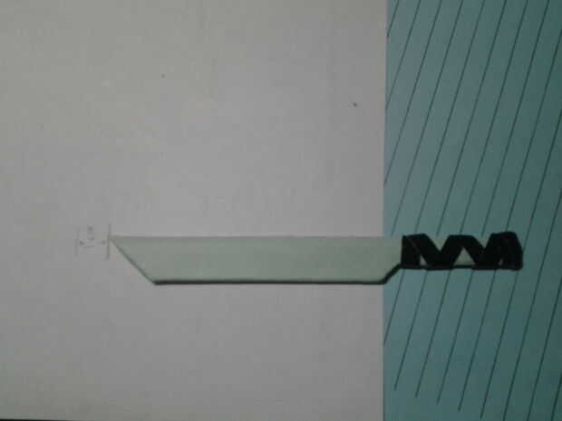 8: doble 1/4 pulgada de papel encima de la espada y empezar balanceo a la derecha.