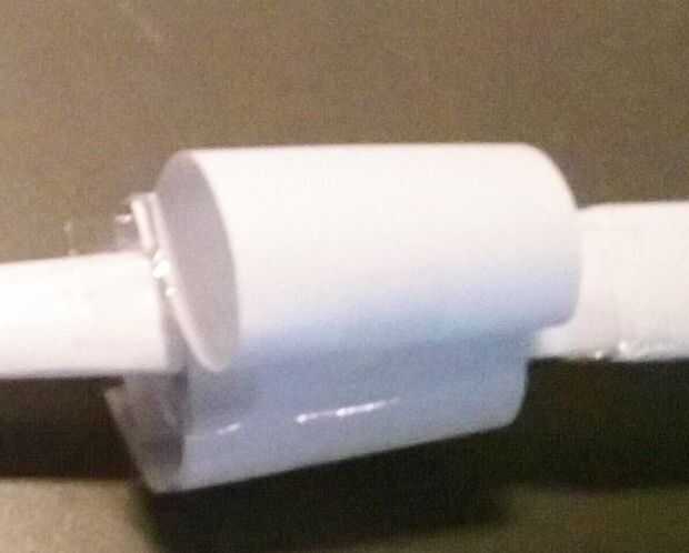 La última hoja de papel y el tubo realmente amplio. Cortar por la mitad y uno en la parte superior de la guardia y uno en la parte inferior de la guardia como en la imagen de la cinta.