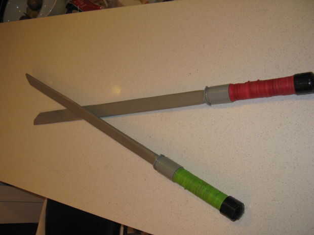 La espada costo $ pocos, hecho principalmente de tubería de PVC de su caja grande local. La hoja es calentada y aplanado 3'4 "horario 40 tubo de PVC. Resultado final sorprendentemente robusto y agradable.