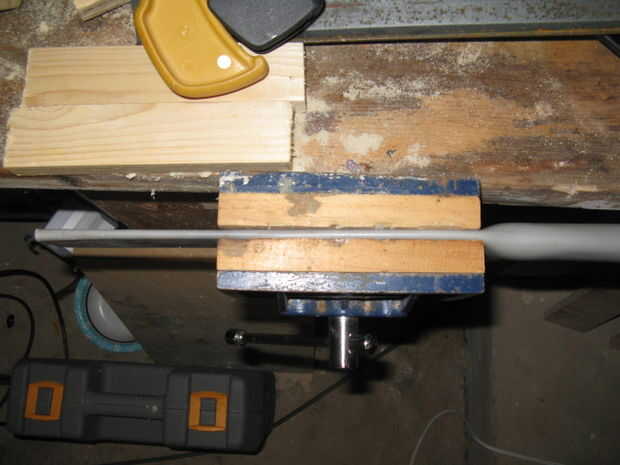 Corte una sección de 3/4" tubo, cerca de 30" de largo, ahora viene la parte un poco difícil... usted necesita calentar el tubo hasta que esté lo suficientemente suave como para formar de nuevo. Usé la pistola de calor en el ajuste 'high'. Ir hacia adelante y hacia atrás a lo largo de una sección, dándole la vuelta para calentar uniformemente todos los lados.