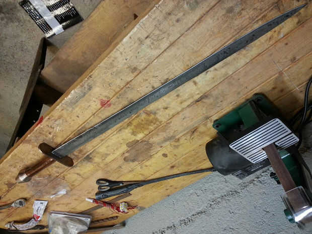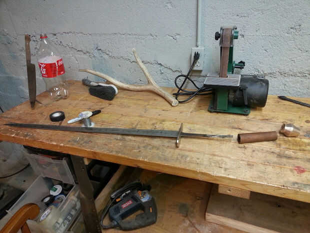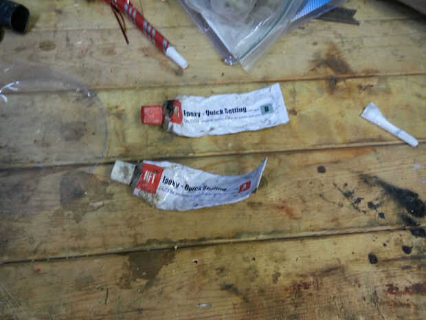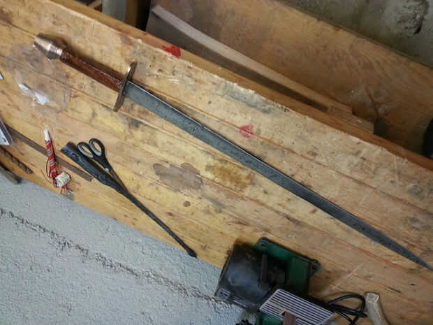 Con las piezas todo preparado, ahora todos la permanecido fue pegado para que sea una espada completa. Usé un epoxi de dos partes como un agente de la vinculación.