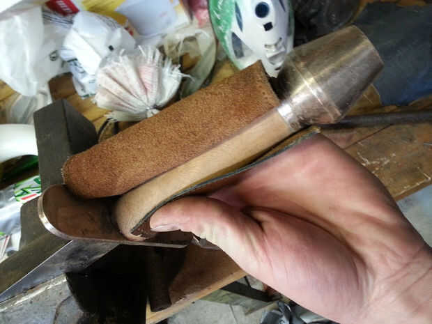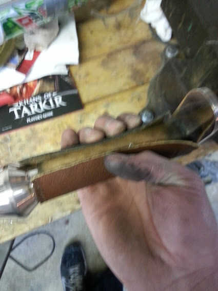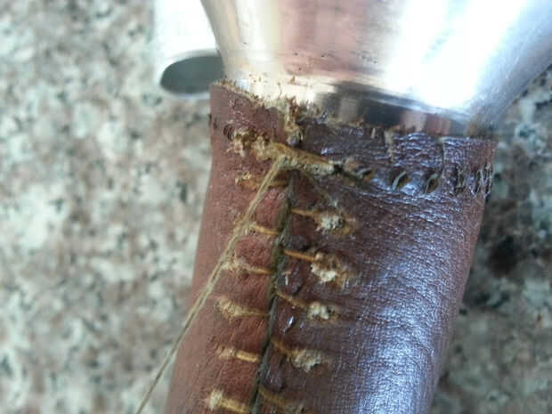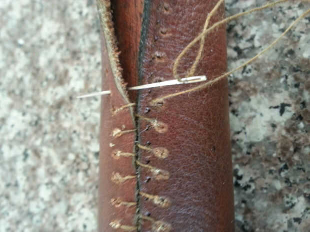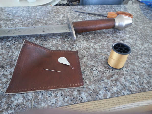 Esta fue mi primera vez cose cuero. Tuve la idea de tratar de envolver la empuñadura de la espada como realmente no me gustó la manera de madera resultó.