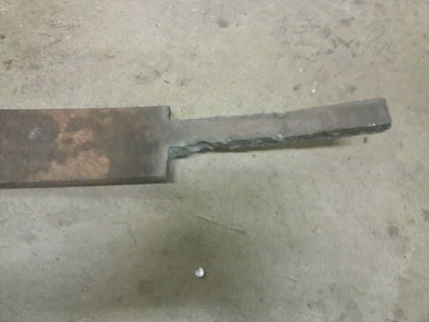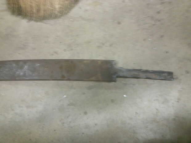 Tuve la longitud correcta, todo lo que tenía que hacer era cortar el back-end para el tang. He utilizado un soplete para cortar los lados. He hecho unas 10 pulgadas de largo.