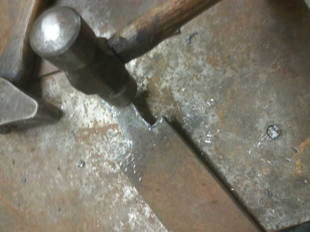 Para comenzar a forjar, necesité llegar a la forma y tamaño adecuado. Corté la parte trasera de la pieza, ya que al final de la primavera más había afilado y luego quería. Corté el otro lado antes del agujero en el acero.
