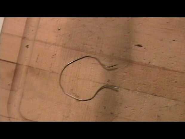 Doblado un clip de papel en un círculo con los extremos que sobresalen. Luego lo había exprimido y empujó en el agujero hizo antes y poner mi herramienta en él.