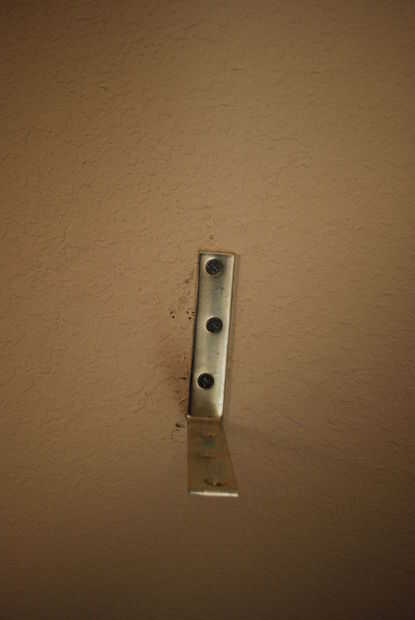 También descubrí que poniendo el tornillo superior de la abrazadera en la pared primero antes de perforar el segundo orificio es mucho más fácil, hace menos difícil mantener nivel. (Pero en la foto había perforado de los agujeros, causó muchos problemas para mí porque no eran de nivel a pesar de que intenté, fue apenas más general)