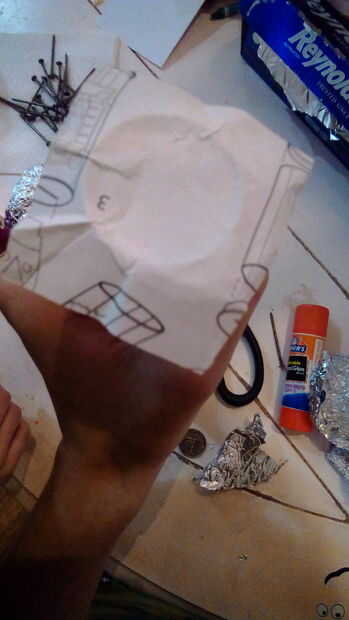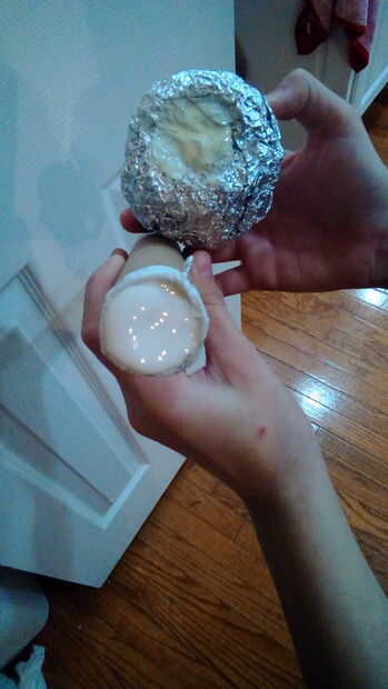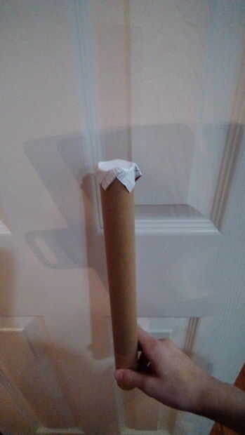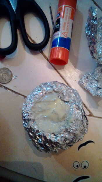 Poner un trozo pequeño de papel en la parte superior del tubo. Pegamento en. Poner pegamento en la parte inferior de la bola y el pegamento en la parte superior del papel. Pegue los dos juntos. Dejar secar totalmente.