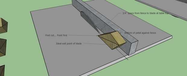 Levante la hoja de Sierra de la tabla hacia arriba. Establecer la guía en 3/4" de la hoja. Inclinación de los grados de la hoja de aprox. 14 para poner un bisel en las piezas. Puede que necesite realizar sucesivos cortes y lleven la cerca hasta que estés contento con el perfil de algunos experimentos del ángulo de la cuchilla pueden ser necesaria para todos los gustos y configurar pero es el más importante , evitar contragolpe!, Asegúrese de que la cuchilla todavía corte la pieza cortada para esa configuración de perfil con una sola pasada!