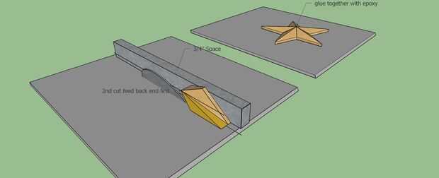 (Ver algunas de las fotos de 12" y 24" biselado estrellas hechas en la misma plantilla, mismo proceso... parada de diferentes posiciones de bloque en la configuración y diferentes líneas de corte)