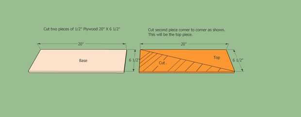 Cortar dos piezas de madera contrachapada de 1/2" a exactamente 20" por 6.5". Todas las esquinas de 90 grados (de precisión)