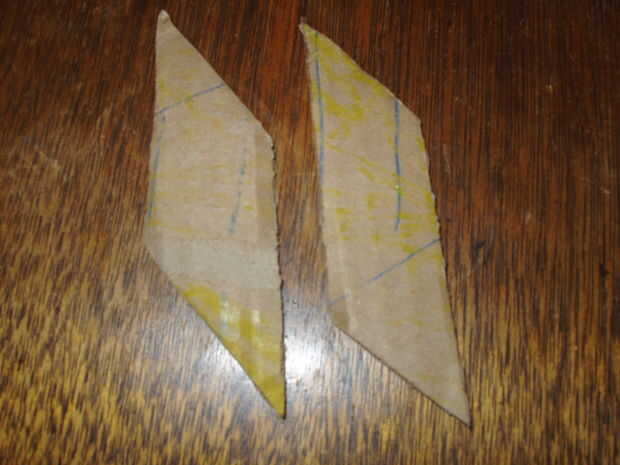 primero corte dos tarjeta Junta parralelagrams cerca de 4 pulgadas de largo.