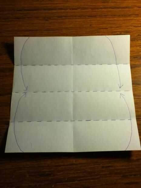 Paso 2: Tome dos hojas; doble superior e inferior hacia el medio y doblar por la mitad otra vez