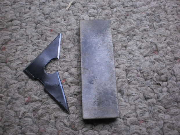 Ahora lo único que tienes que hacer es afilarlo. Primero en la amoladora de banco, entonces en un afilador de cuchillos para darle un borde más fino. Lo probé en mi objetivo de arco y se pega allí muy bien si bien hecho. Disfruta y recuerda tener cuidado.
