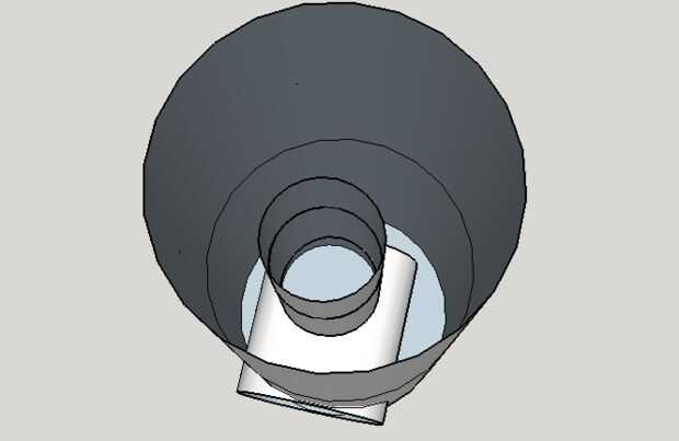 El siguiente paso es conseguir las dos latas pequeñas. Cortar las tapas y fondos de estas latas. Luego, uno de los botes pequeños por lo que sólo tiene una altura de 6 cm. pila estos dos latas verticalmente y sello de juntas. Estas pequeñas latas servirá como la chimenea donde el calor se levanta en. Tomar la chimenea y lo coloca en el agujero en el lado de la lata medio. Asegúrese de que la chimenea entra unos 2,5 cm de la poder del medio. La razón de esto es que la chimenea es constante. Usted puede ahora sellar la poder del medio y la pila de humo juntos.