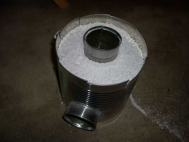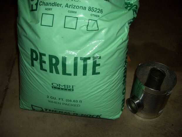 Una vez montado, tienes que llenar el espacio sobrante con un aislador. Usé perlita, pero cualquier aislador funciona bien. Se pueden utilizar arena, arcilla, aislante de espuma, vermiculita, ceniza, nada con buenas propiedades aislantes. Yo uso perlita, en mi jardín, así que tuve a la mano. Es básicamente el mismo tipo de bolas de espuma pequeña que encontrará dentro de una silla del bolso de haba, pero no creo que sea lo que se utiliza dentro de una silla del bolso de haba. Vista es igual que ellos. De todas formas... puedes conseguirlo en cualquier tienda de mejoras para el hogar o centro de jardinería.