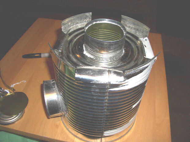 Llene el área algo lentamente, tardando y sacudan la poder por lo que el aislamiento se instala en las grietas alrededor de las latas de sopa. No es mucho pero como no quiere la Asamblea aparte del tarro. Solo un rap suave en el exterior de la No.10 debe hacer el truco.