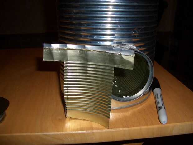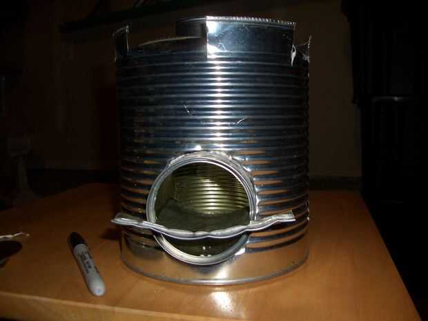 Reconozco que aunque originalmente usé una lata de sopa norma cuarta, me pareció insuficiente para sostener el combustible. Recurrido a la corte una lata más grande (tamaño de Chunk), hasta que mi estante del combustible fue resaltada de la poder más y más. Esto permitió que el peso de la madera que se sobresale el puede descansar cómodamente en el estante sin inclinación hacia arriba y descarga del combustible sobre el suelo. En la versión final verá lo que quiero decir.