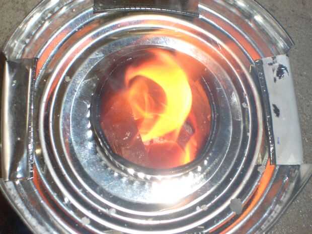 De principio a fin una vez que tuve todas las latas y herramientas, me tomó aproximadamente una hora para cortar, montar y tener mi primer fuego. Todo esto pesa solamente sobre una libra más o menos. Es pequeño y compacto. Da mucho calor con muy poco humo. Utiliza poco combustible, fácil de obtener luz y fácil de poner hacia fuera. Mi única precaución sería que fuera calientan por lo que se tenga cuidado de lo que te lo pones y no tocar una vez que se está quemando.