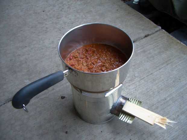 Cociné algunas Chile enlatado en la estufa (ver fotos) con sólo dos de las cuñas para el combustible y probablemente podría haber hecho con una.
