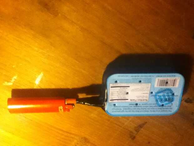 Este es como hacer el marco entero de todo. Primero deberás tomar la lata altoids y cierre y cinta de todos los lados para que el aire no puede salir. Entonces youtake un clavo y poke del agujero en la parte inferior de la lata, como la imagen de abajo. Siguiente perforar un agujero en el lado de la lata altoids y la paja se la cinta. Ese es el marco.