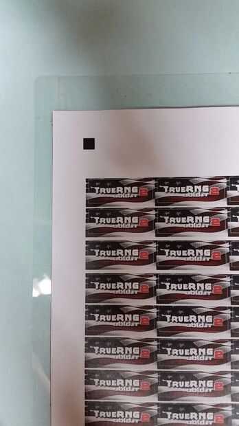 1. Cargue el papel de la etiqueta engomada impreso en una hoja de soporte Alinee la esquina del papel con las marcas adecuadas ons la hoja de registro.