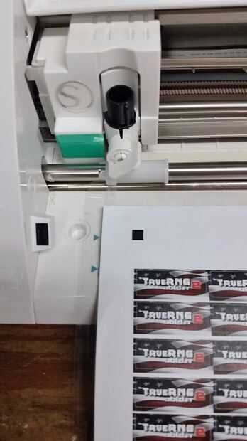 2. Presione el botón mat corte de carga en el dispositivo de la silueta. El cortador tratará de alinear a las marcas de registro impresas.