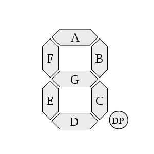 El display de 7 segmentos se compone de siete LEDs (de ahí su nombre) dispuestas en forma rectangular como se muestra (ver primera imagen de arriba). Cada uno de los siete LEDs se llama un segmento porque cuando se ilumina la parte de formas de segmento de un dígito numérico (números decimales y algunas letras) que se mostrará. Un LED adicional de 8 (esquina derecha) se utiliza a veces en el mismo paquete, por lo que la indicación de un punto decimal, (DP) cuando dos o más displays de 7 segmentos están conectados juntos para mostrar números mayores que diez.
