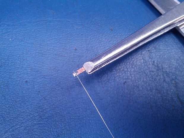 Antes de que un alambre se une cada contacto se ajusta para caber dentro de la caja de SD con una lima de aguja.